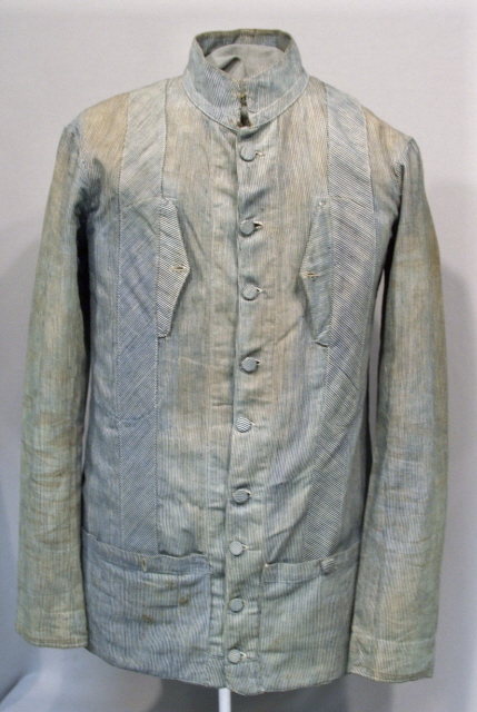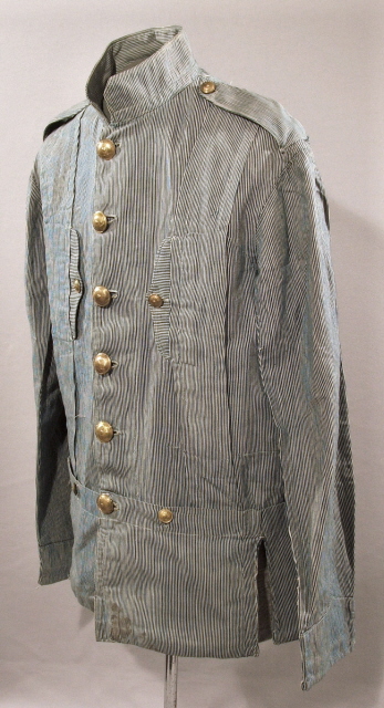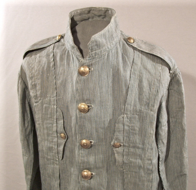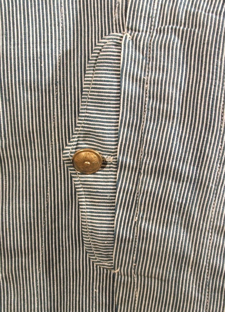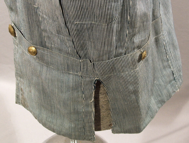 This variation is made without shoulder straps and with plain cuffs. Also has rayadillo cloth covered buttons.
