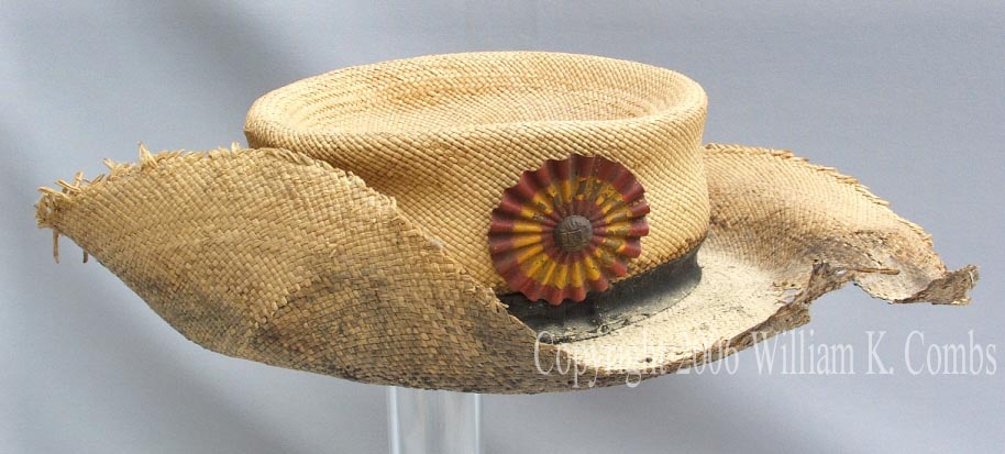 *Coming Soon* An example of the classic soldier's straw hat, the souvenir of an American soldier named J. B. Stantral. We will examine this and several other period pieces in more detail soon.