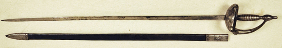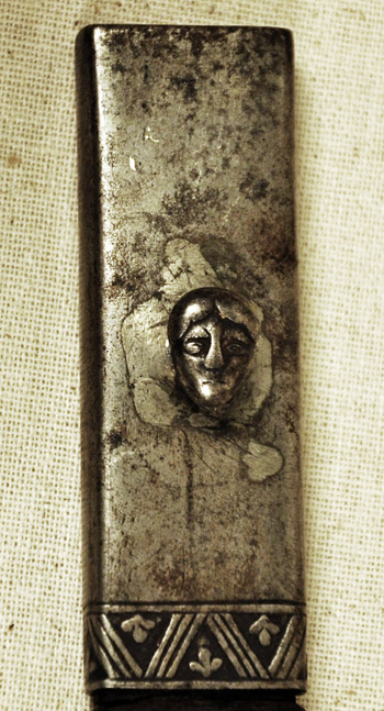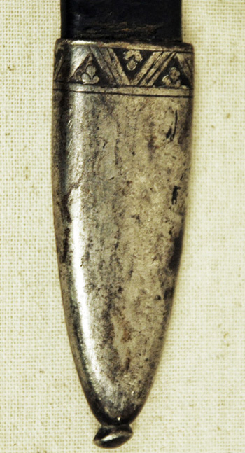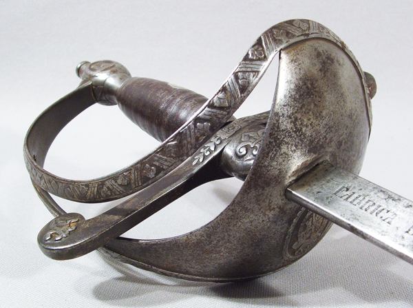 Details of the only known surviving scabbard shown with sword number 14. Coll. The National Infantry Museum While several of the halberds are accounted for, I know of only three swords, one in a private collection in Spain, one at The National Infantry Museum, Ft. Benning, GA, and the one picture here from my collection. All are dated "1863", the specimens in Georgia and Spain are stamped with accountability numbers "14" and "18" respectively. My sword is not numbered. Like the halberds, more are undoubtedly out there to be found. I would like to hear of any other examples of either weapon, Alabarderos images or sleeve chevrons that come to light. |